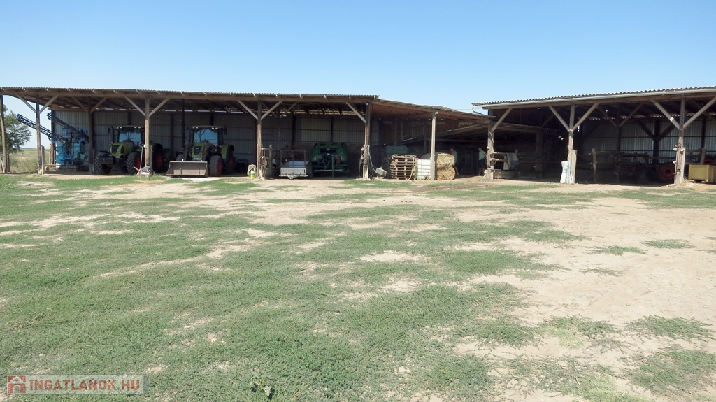 Újszerű állapotú, nyitott, nyeregtetős gazdasági épületek + terménytároló. Az együttes alapterületük 600 nm.