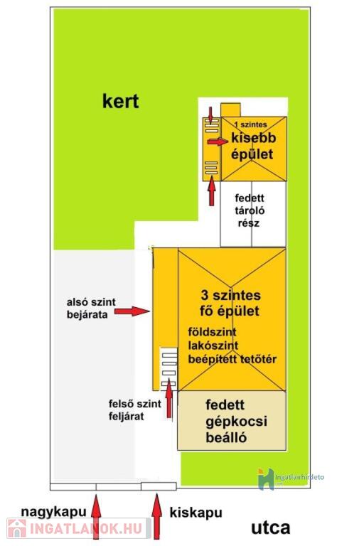 Gödöllő Királytelepen, az Alkotmány utcában, 561 m2-es telken, 3 szintes családi ház + a telken különálló kisebb, 25 m2-es teljesen elkülönült kisházzal eladó.