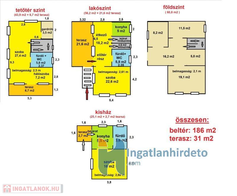 A tetőtér beépített, belső lépcsőn keresztül juthatunk a felső szintre.