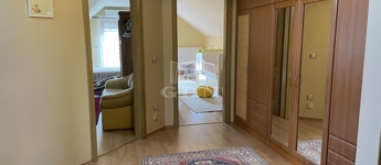A klimatizált felső szintre, kényelmes fokkiosztású stabil lépcsőn juthatunk fel, ahol egy 19,4nm (nettó 18,5) közlekedő, három egyenként 17nm (nettó 13,2), 23,2nm (nettó 20,2) és 18nm (nettó 15,5) szoba, valamint egy 6nm (nettó 5) gardrób és 7,1nm (nettó 5,2) fürdőszoba került kialakításra.