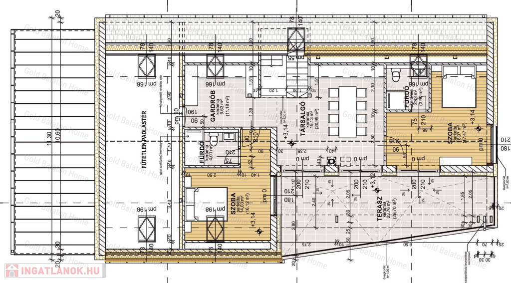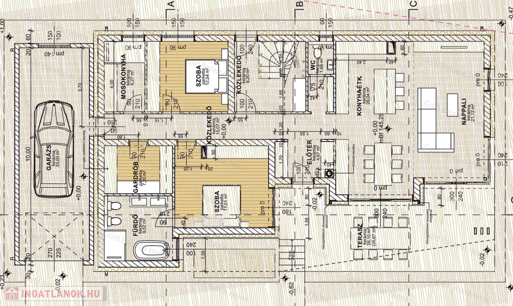 - az épület nettó alapterülete két szinten 260 m2, plusz kettő terasz összesen 52 m2 területű