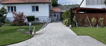 A 852 m2-es telek parkosított, automata öntözőrendszerrel, robot fűnyíróval ellátott, prémium anyagok felhasználásával, magas műszaki minőségben megépített térköves közlekedő részekkel rendelkezik gyalogos és autóforgalom részére egyaránt.