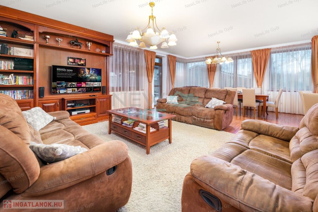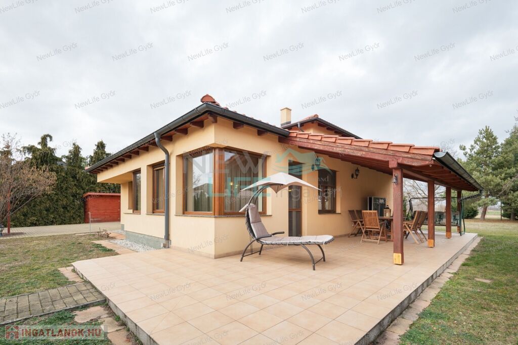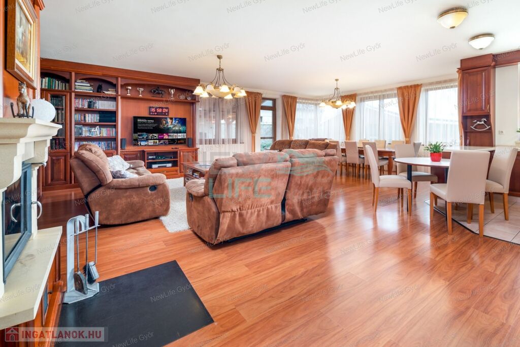 Győr csendes, családi házas övezetében, Ménfőcsanakon várja új tulajdonosát ez a 2008-ban épült, luxus családi ház. A 6247 m²-es sík telken elterülő, 340 m² alapterületű ingatlan nem csak méretével, hanem egyedülálló kényelmével is lenyűgöz.