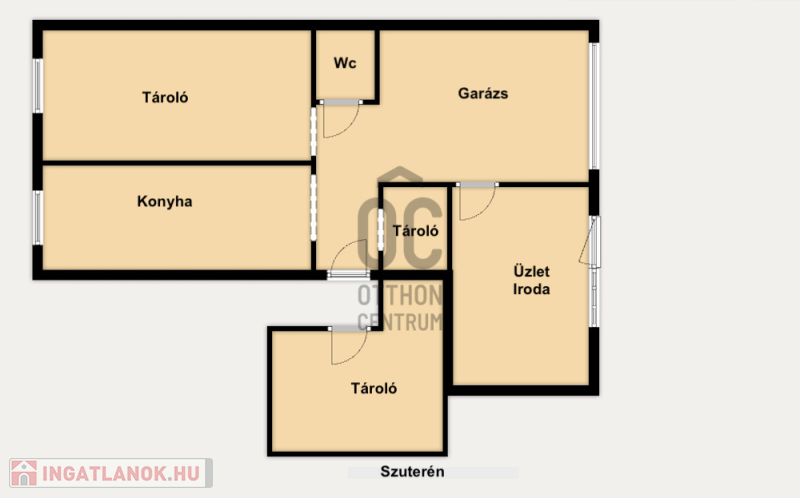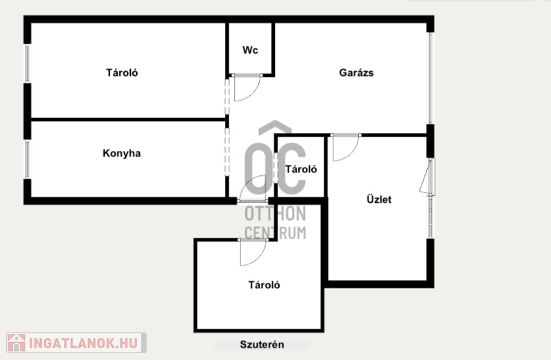 Szuterén: garázs, tárolók, konyha, WC + külön bejáratú üzleti helyiség