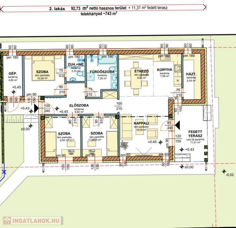 -nappali-konyha étkező 1 légtérben mely csatlakozik egy 12 m2-es fedett teraszhoz