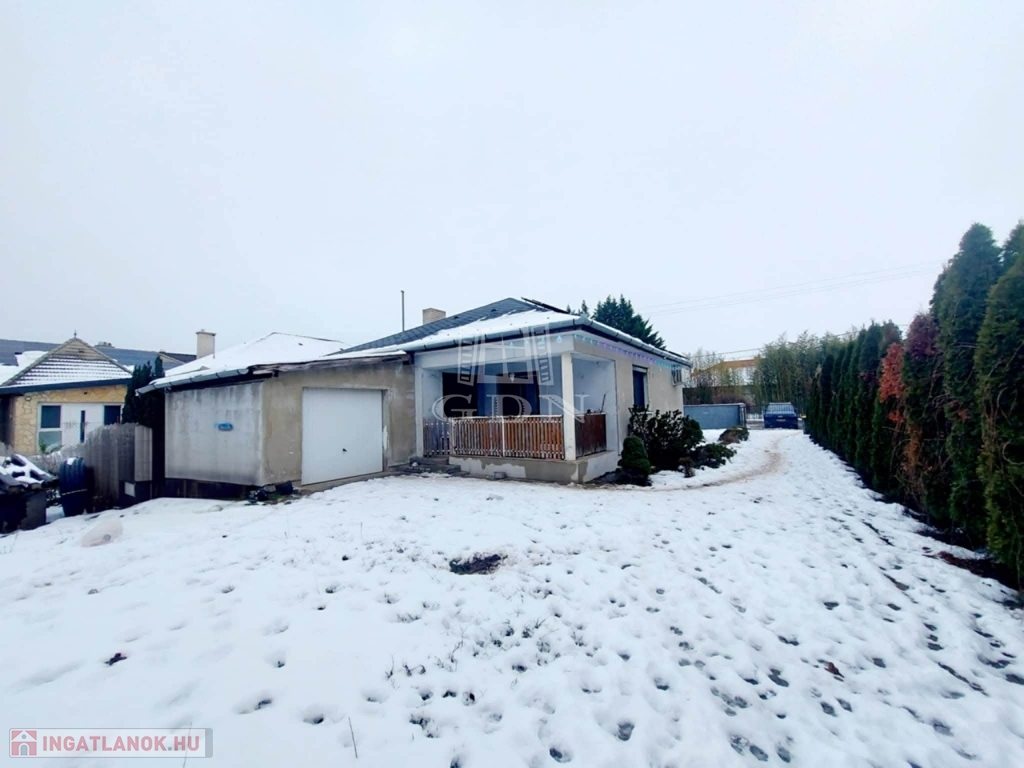 Az épület mellet garázs található, a kert locsolását fúrt kút is segíti.