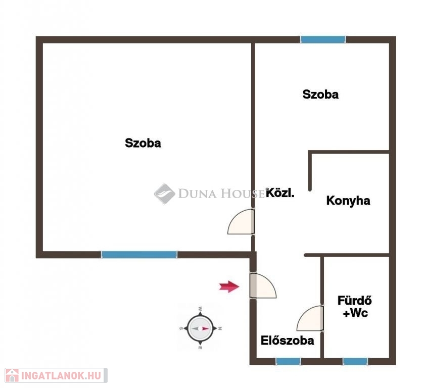 Az ingatlanban egy tágas nappali, egy hálószoba, egy konyha, egy előszoba, és egy ablakos fürdőszoba+wc, továbbá a helyiségeket összekötő közlekedő helyiségek találhatóak. Elrendezése okán összeköltözők, egyedülállók, idősek, kisebb családok számára ideális.