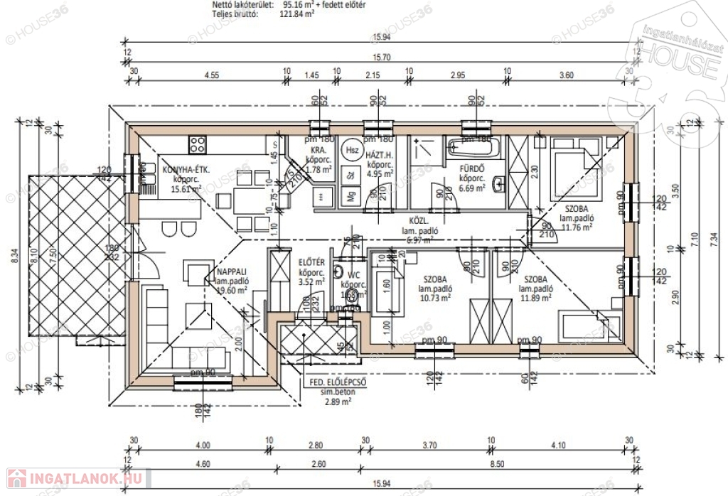 - nappali + 3 szoba