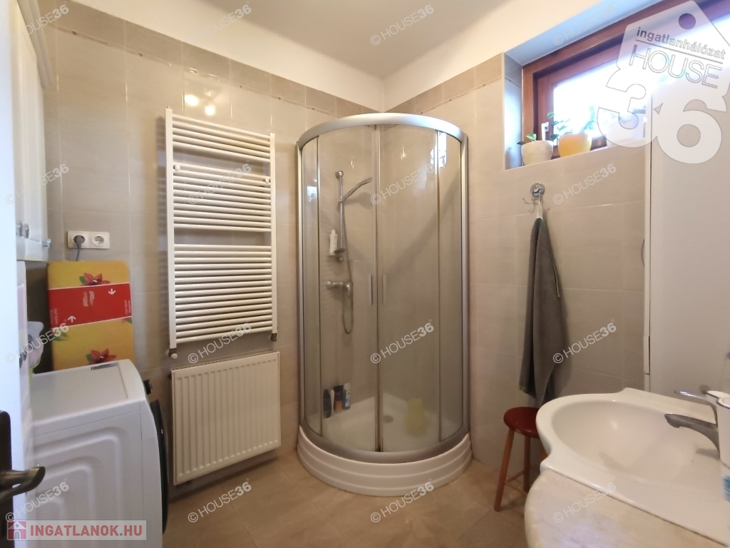 -fürdőszoba zuhanykabinnal, külön wc