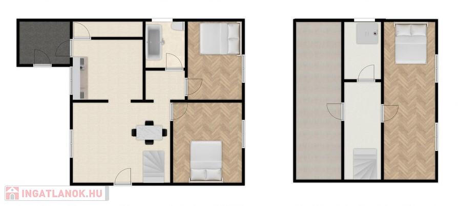 Felső szint (bruttó 54,9m2 - nettó 37,7 m²):