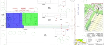 Az első házhoz 470 m²-es, míg a hátsó házhoz egy 560 m²-es, kizárólagos használatú, lekerített telekrész tartozik.