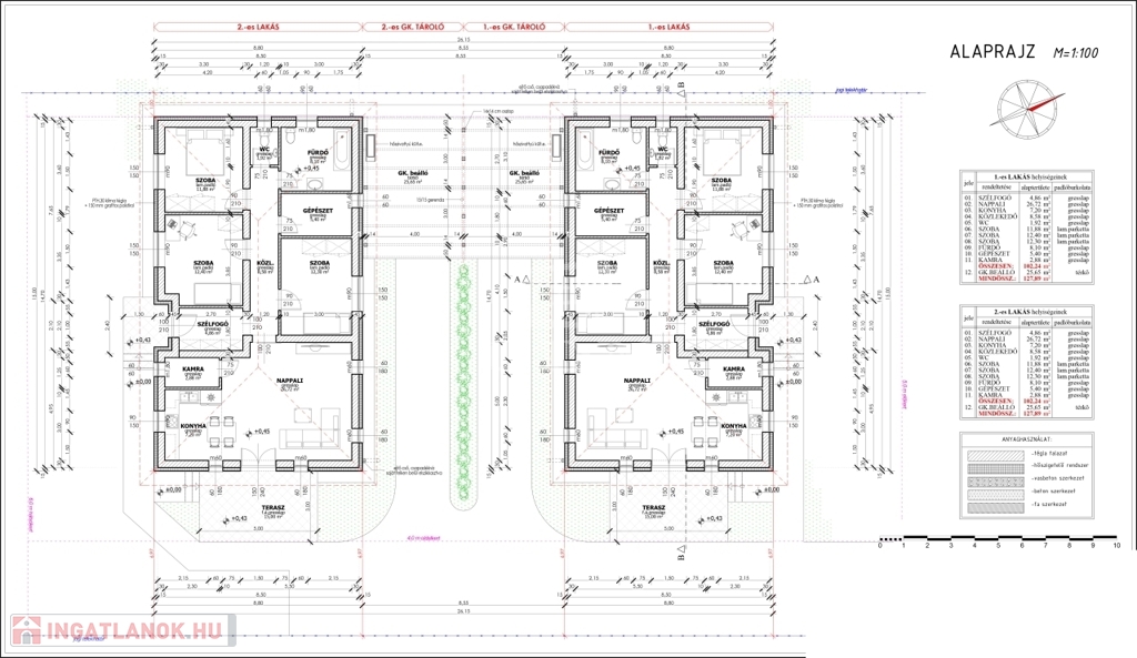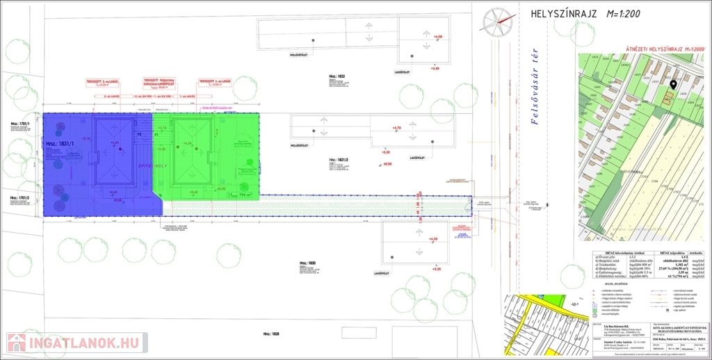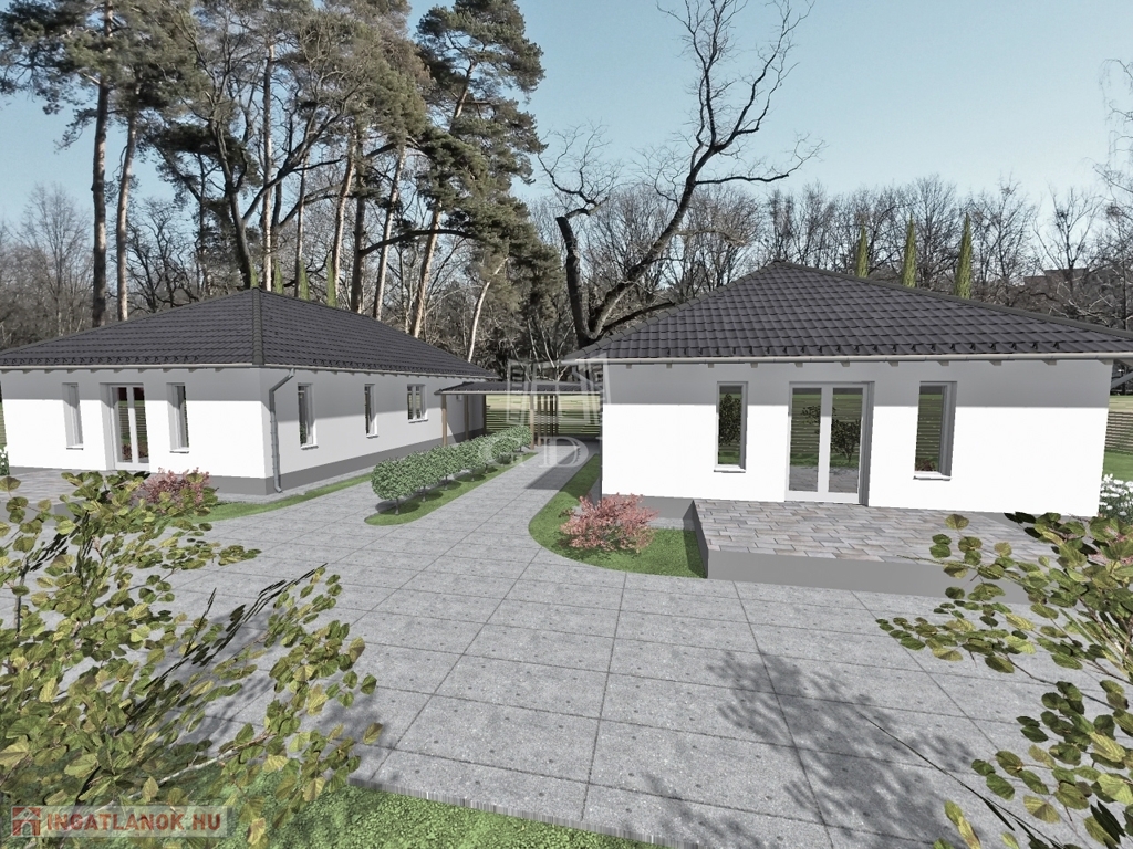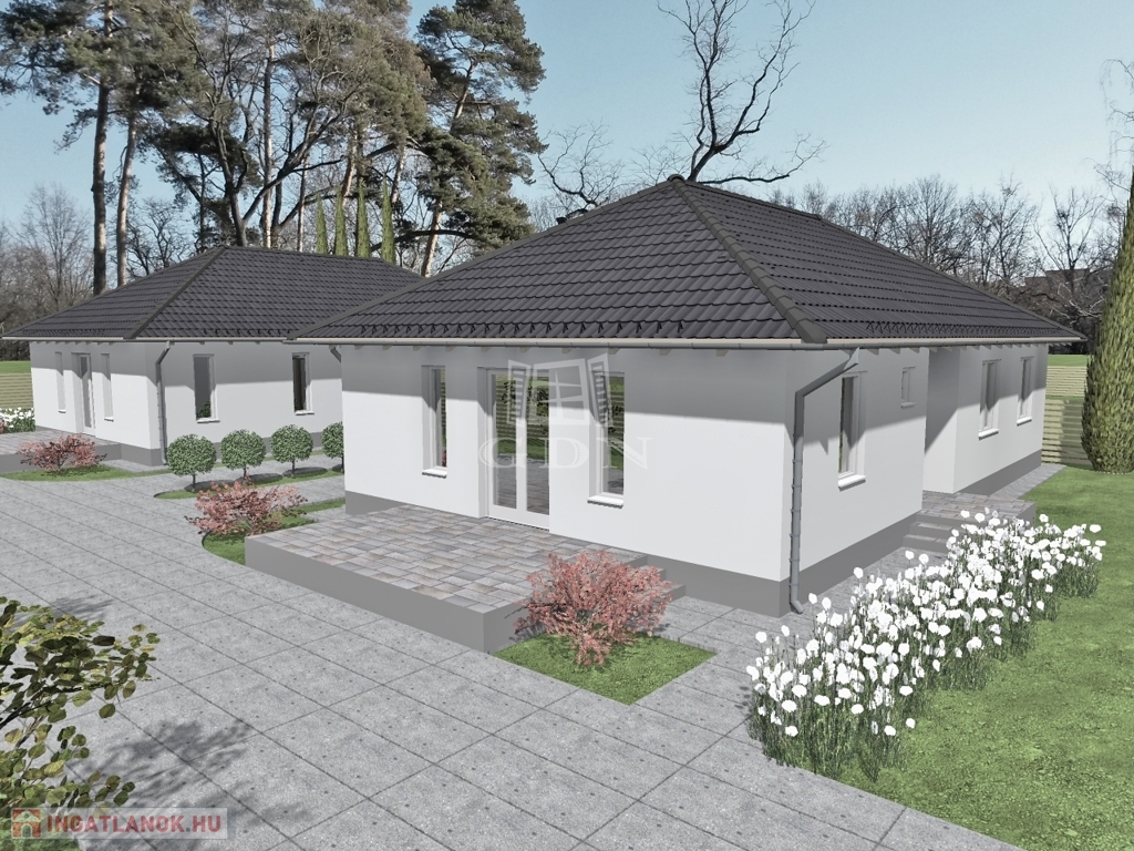 Kóka, Felsővásártér 61/A szám alatt, egy 1306 m²-es telken kínálunk eladásra két, nettó 102,24 m²-es családi házat, amerikai konyhás nappalival és három külön nyíló szobával.