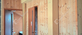 Az egész épületben a fa meleg hangulata dominál. Fölszinten és az emeleten látszó gerendák, a fürdőszobában minőségi burkolat,az egyedi készítésű fa beltéri ajtók, mind melegséget árasztanak.Minden szegletéből a nyugalom, a kényelem és a kifinomultság sugárzik.