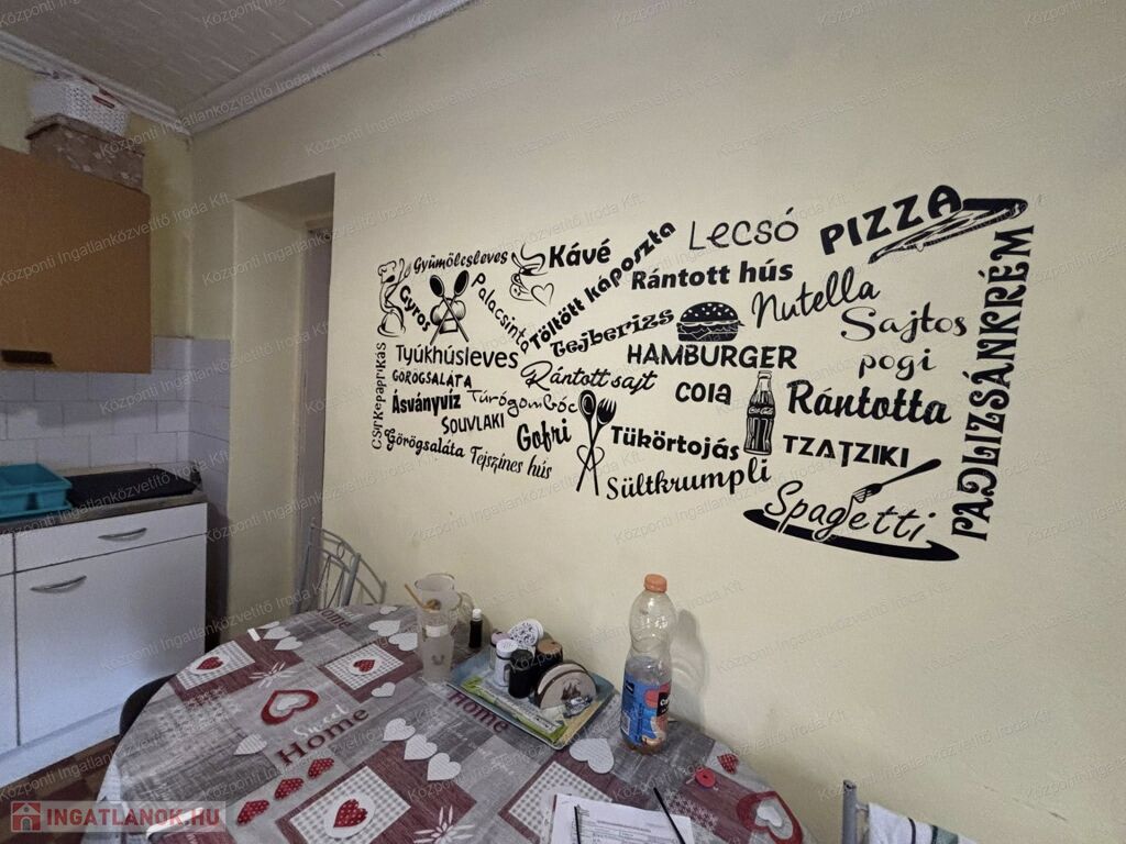 Az 1796 m2-es telken, 69 m2-es tégla építésű, részben felújított családi ház, melléképületek és mobilgarázs helyezkednek el. A házban helyet kapott egy előszoba, 2 szoba, konyha étkezővel, fürdőszoba WC-vel, folyosó, háztartási helyiség. A folyosó a hálószoba mellett található, adott a lehetőség a két helyiség összenyitására is, így kialakítható egy 10 m2-el nagyobb szoba. Az otthon melegéről gázfűtés gondoskodik, a melegvizet bojler biztosítja. A külső belső nyílászárók cseréje megtörtént, az ablakok műanyagok, redőnnyel szereltek.