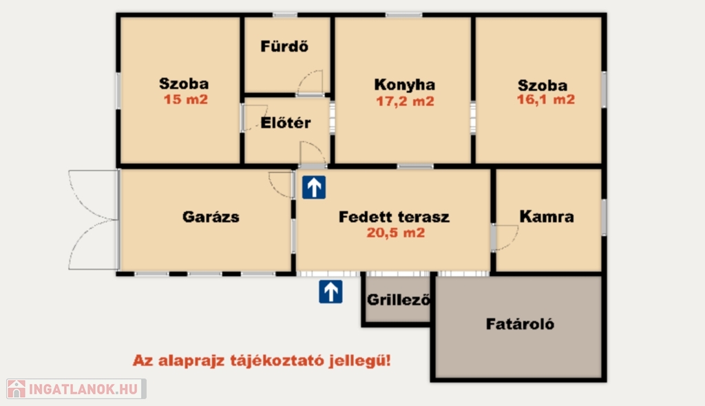 - Nyílászárók: fa (2 rétegű szigetelt)