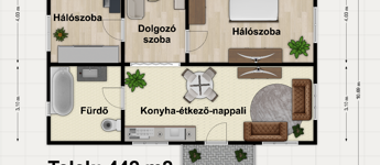 - A 442 m2-es telek mérete éppen ideális a mai társadalmi elvárásoknak. Nem kell sok füvet nyírni, viszont minden elfér még a meglevő zöld, füves területen. (medence, garázs, kerti kiülő, gyerekjátékok)