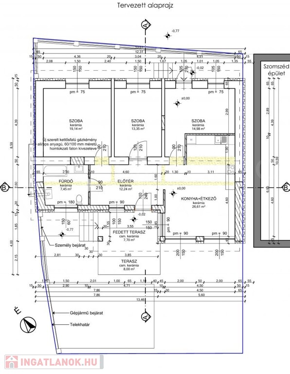A ház egy meglévő épületből lesz teljesmértékben átépítve, ahogy a tervrajzokon látható.