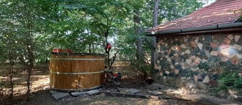 A telken található egy faház, mely kb. 14 m2, belül teljesen lambériázott, akár szauna is kialakítható benne, ezen kívül egy fával fűthető DÉZSA FÜRDŐ.