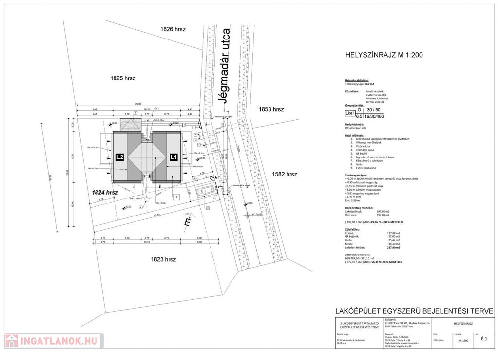 Az ikerházak egy 660 m2-es telken épültek fel. Ebből a 2.. lakáshoz kb. 382 m2 saját terület tartozik.