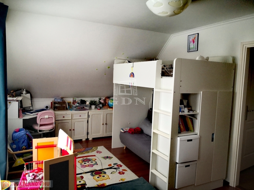 Az emeleten 3 hálószoba, fürdőszoba és gardrób található, az alagsorban pedig kellemes finnszauna, hobbiszoba, tároló és mosókonyha kapott helyet.