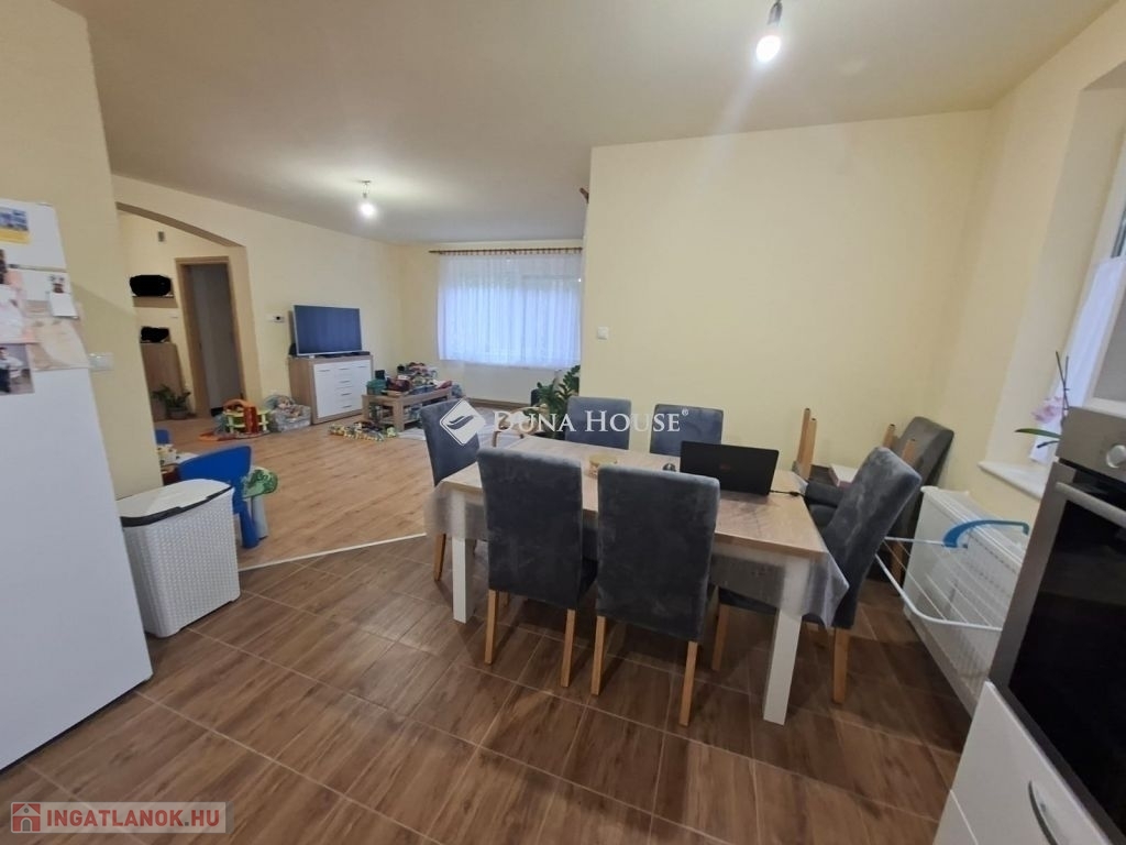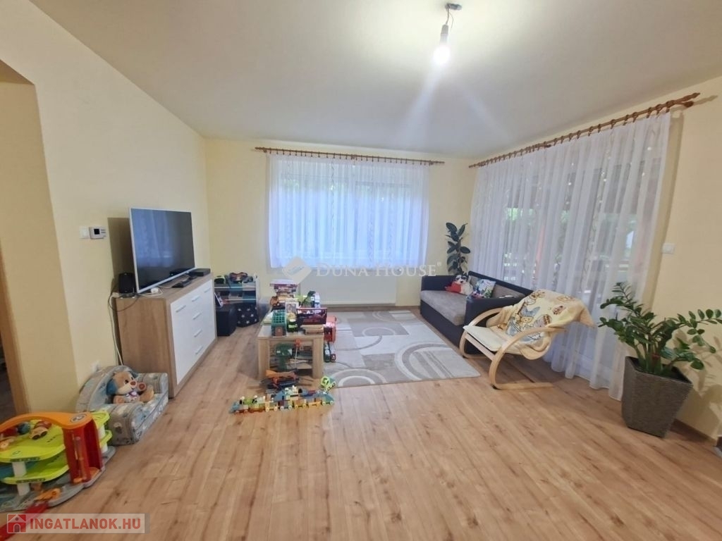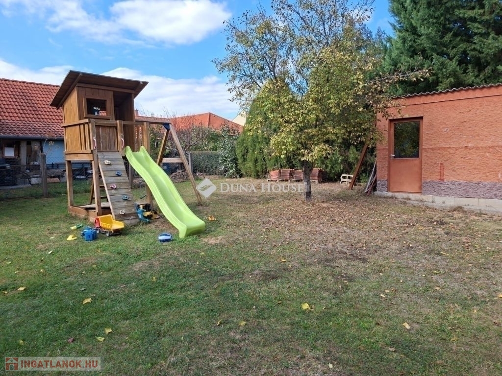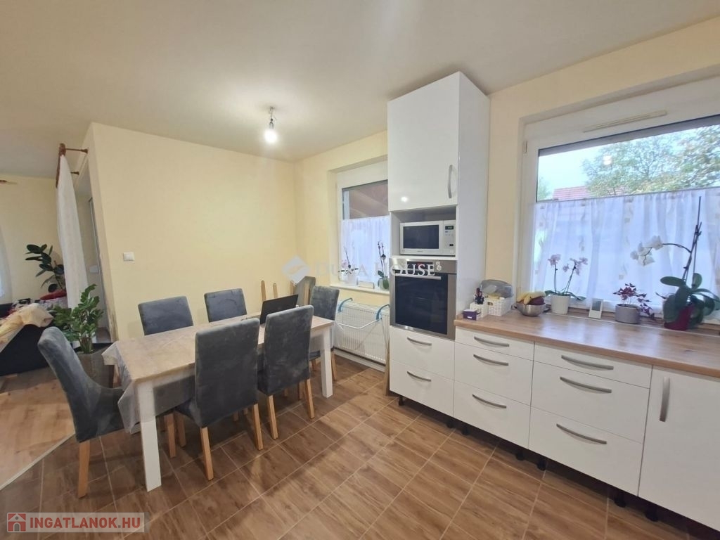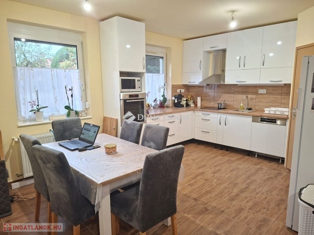 Eladó 2003-ban Porotherm 38 N+F téglából épült kétszintes családiház 25 nm-es fűtött garázzsal. A ház összesen 160 nm nettó. A földszint 85 nm és a tetőtér kb. 100/75 nm.Tetőtér beépítése 1,5 éve kezdődött folyamatban van. Készültségi szint kb 60 %-os. Fűtés, víz, villany előkészitve teljesen.Új Roto R7 műanyag ablakok a tetőtérben, Rehau kétrétegű műanyag ablakok a földszinten redőnnyel és szúnyoghálóval mindkét szinten. A földszint 2,5 éve teljesen fel lett újítva, kivéve a fürdőszobát.Külön két fürdő/WC és egy külön WC a földszinten. Grohe csaptelepekkel.Panasonic 5.3 Kw-os klíma a földszinten.Amerikai konyhás nappali minőségi Bosch beépített gépekkel.Földszinten egy 15 nm-es szoba, a tetőtérben három nagyobb.Mosókonyha/háztartási helyiség és kamraWiessmann 24 Kw-os Gázkazán Radiátoros fűtéssel, a két szint külön termosztáttal ellátott, egyedileg állítható.A melegvizet bojler éjszakai árammal vagy a gázkazán is biztosítja.25 nm-es fedett terasz, közvetlen kapcsolat a kerttelUtp hálózati csatlakozás kiépítve az egész házban.3 X 25 A ipari áram.3 + 8 m3- ciszternába bevezetve az esővíz csatorna.Parkosított, gondozott udvar örökzöldekkel.