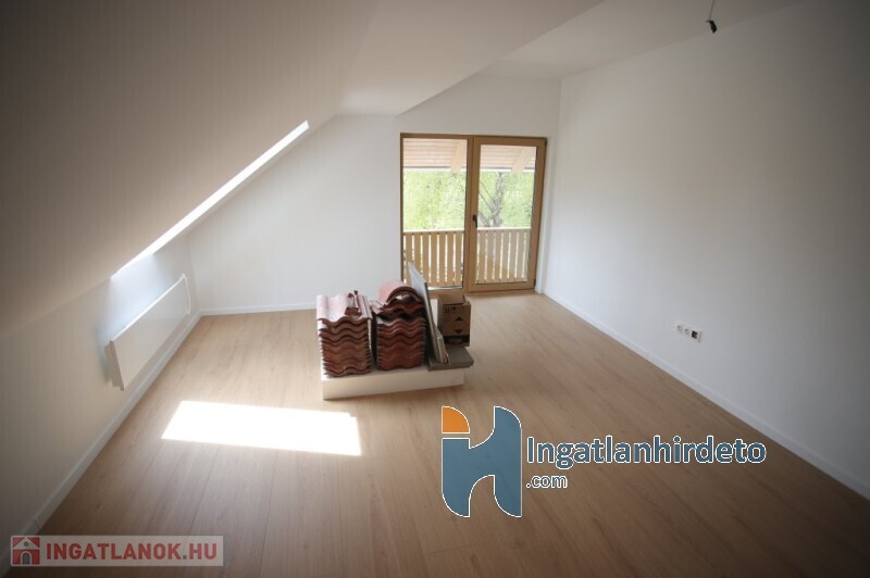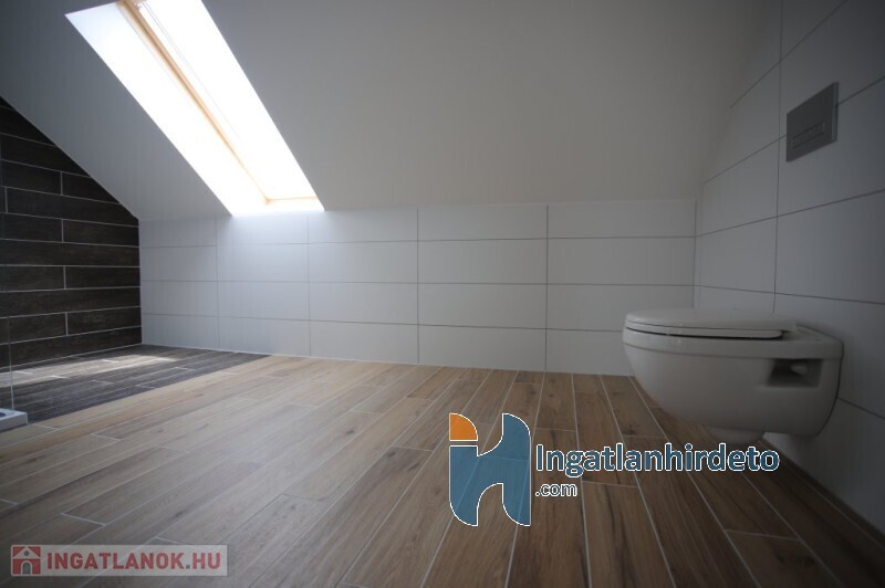 Az emeleten/tetőtérben szintén egy tágas előtér fogad minket elsőre,továbbá találunk még egy fürdőszobát,2 szobát. Valamint egy nyugati fekvésű,fából készült,fedett 3 négyzetméteres teraszt.