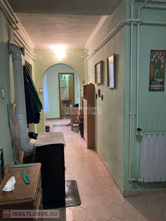 Nyíregyházán a nagy körúton eladó 100 m2-s, négy különnyíló szobás, konyha+étkezős, fürdőszoba+wc, wc+kézmosó, kamra, egyedi gázfűtésű, műanyag nyílászárós mely redőnnyel felszereltek, tégla és vályog építésű a tégla részen 8 cm-s szigetelés, külsőleg nemes vakolattal burkolt, palával fedett de megerősített tetőszerkezet, állapotra felújítandó családi ház. Az ingatlan 860 m2-s telken fekszik tartozik hozzá 18 m2-s fedett burkolt terasz, ipari áram, ásott kút és három állásos garázs. NÉGY SZINTES TÁRSASHÁZ ÉPÍTÉSÉRE ALKALMAS TERÜLET!
