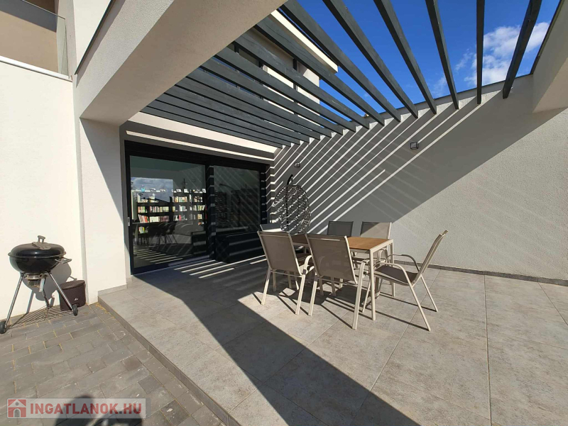 Kert: A házhoz (tervezett zöldfelület) 553,61 m2 kert tartozik, amelyben automata öntözőrendszer került előkészítésre. A nappalit a kerttel nagy méretű, déli fekvésű terasz kapcsolja össze.