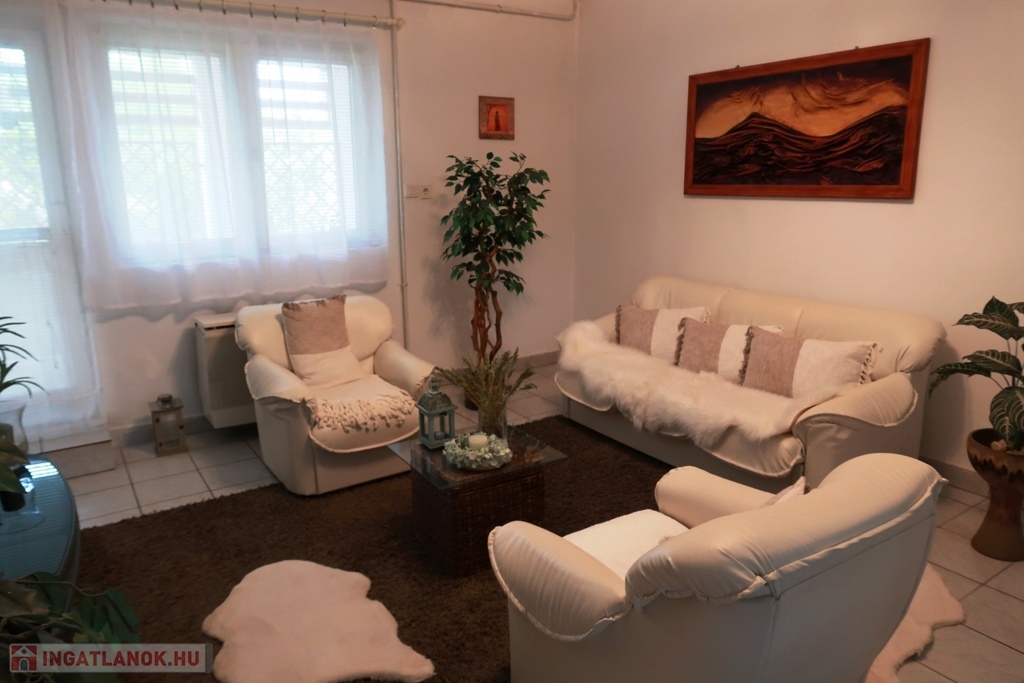 Nyíregyházán, Nyírszőlősön megvételre kínálunk egy szintes, 140 nm-es, tufa / szilikát szerkezetű, konyha, étkező, 3 szoba, 2 nappali és 2 fürdőhelyiséggel rendelkező családi házat. Az ingatlan szép állapotú, fa dupla üvegű nyílászárókkal felszerelt, járólapokkal és laminált burkolatokkal burkolt, tágas és világos terekkel rendelkező. Az ingatlanhoz továbbá tartozik egy 70 nm-es pince, garázs, 12 nm-es fedett pihenő terasz, filagória valamint szalonnasütő is, tetőszerkezete Bramac tetőcserép. Fűtéséről egyedi gáz kazán gázkonvektorokkal gondoskodik. Kérem keressenek bizalommal kérdéseikkel. Az ingatlan azonosítója: 92003Érdeklődni: +36304092510 Az ingatlan azonosítója: 92003 Érdeklődni: +36304092510
