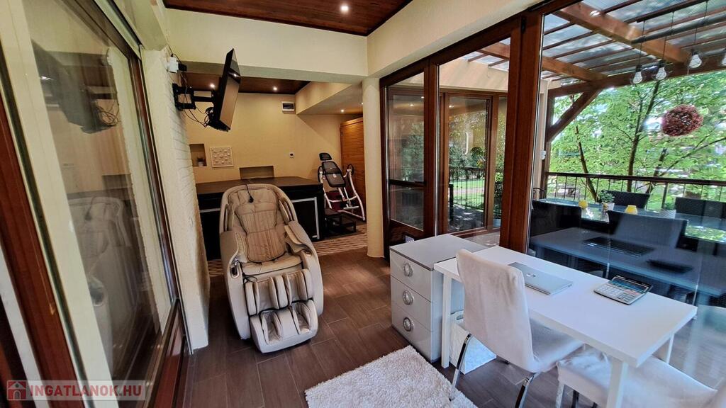 Eladó a Praktiker közelében egy 2009-ben épült, mediterrán stílusú, 3 szoba + nappalis, téglából készült, szigetelt családi ház. Az ingatlan egy 741 nm-es, gondosan parkosított telken fekszik, ahol kétállásos garázs, fedett terasz, saját wellness részleg és fűtött télikert is található.