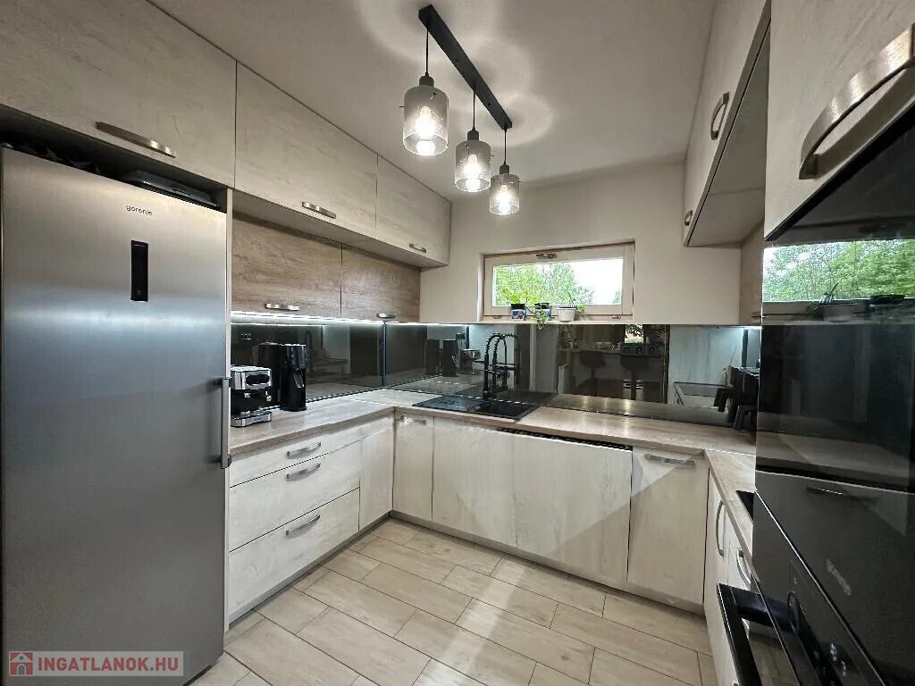 Több lábon álló fűtés: Egyedi gázfűtés mellett egy vízteres kandalló (1000 literes puffertartállyal) gondoskodik a ház melegéről. Nyáron 2 db klíma hűsíti a tereket.