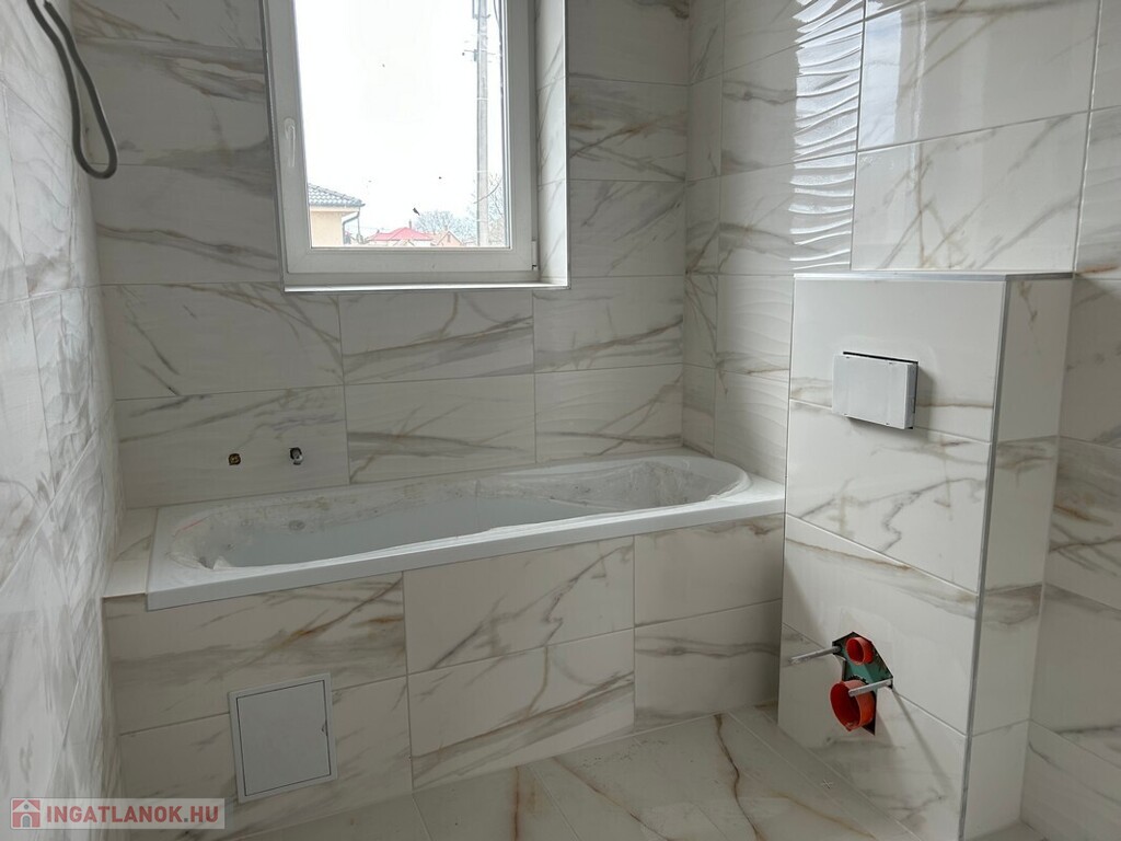Nyírtelek frekventált részén eladó 83 m2-s, három különnyíló szobás,nappali+étkező+konyha egy térben, kamra, háztartási helység, fürdőszoba külön wc, 3 rétegű üveg Kömmerling műanyag nyílászárók, hőszivattyús fűtésrendszer padlófűtésre irányítva, 5 kw-s hűtő-fűtő klíma, utcáról szép kerítés, térkövezett bejárat, 30 m2-s gépkocsi beálló melynek automata garázskapuja van. Az ingatlan 380 m2-s telken fekszik, porotherm 30-s téglából épült, külsőleg 15 cm-s nikecel szigetelés, mennyezet fémvázra erősített tűzálló gipszkarton rajta párazáró fólia, fafödémes rajta 25 cm-s üveggyapot borítás a tető betoncseréppel fedett alatta a páraáteresztő fólia a belső falak gépi vakolással burkolva. KÖLTÖZNI KB. KÉT HÓNAP MÚLVA! VEVŐK RÉSZÉRE A KÖZVETÍTÉS DÍJTALAN, HITEL IGÉNYLÉSBEN IS TUDOK SEGÍTENI!