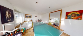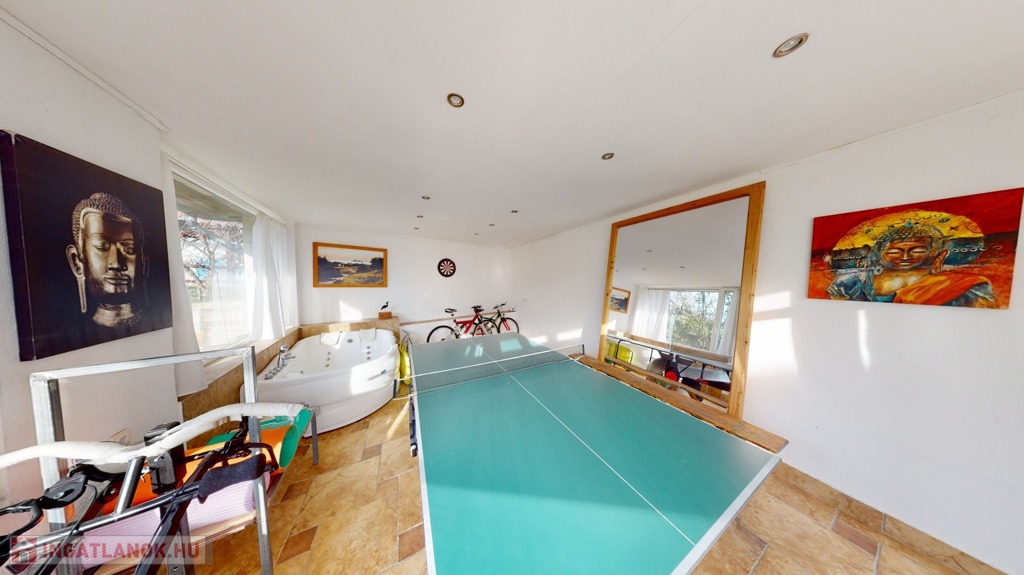 A fő épületben 3 szoba konyha, nappali és előtér lettek kialakítva, a ház érdekessége, hogy mindegyik helység mögött található egy leválasztott rész melyből gardrób, tároló és fürdőszoba lettek kialakítva. Továbbá egy külön leválasztott rész, melynek bejárata az udvarról történik, jelenleg játék és pihenő szoba, konditerem, egy masszáskád is itt került beépítésre a teljes kikapcsolódás érdekében.