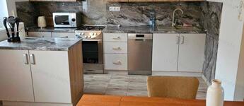 -A három szintes lakótér aló szintjén található egy kis konyha ,tároló,kazánház.Itt