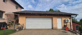 Dupla beállós garázs, amelyhez kényelmes beállás biztosított térkővel burkolt úton
