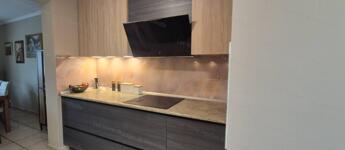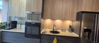 Gépesített, egyedi tervezésű konyha hő- és kopásálló hátfallal, prémium burkolatokkal