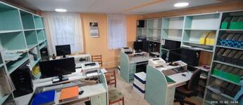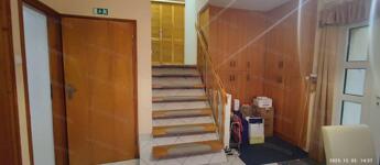 A szuterén irodarész önálló utcai bejárattal kb. 40–50 m², teljesen kialakítva egy 6–9 fős adminisztratív munkára.