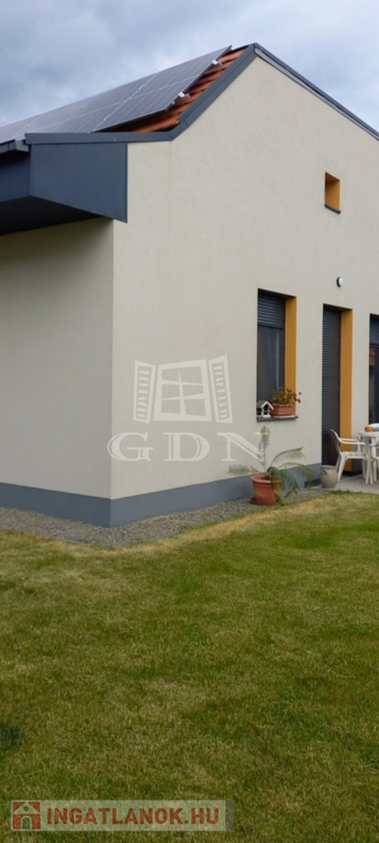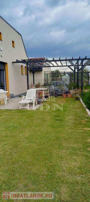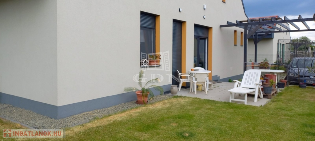 4842. Pákozd új kertvárosi lakóövezetében, 2024-ben épült, újszerű, nappali + 3 hálószobás, 79,1 m2 nettó alapterületű, korszerű ikerházi lakás, 16 m2-es belső udvarral, parkosított 243 m2-es saját kerttel, terasszal, parkolóhellyel, hőszivattyús fűtéssel, 5,8 kW napelem rendszerrel, gépesített Whirlpool konyhával eladó. Ár: 76 MFt