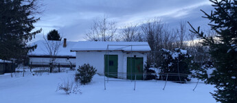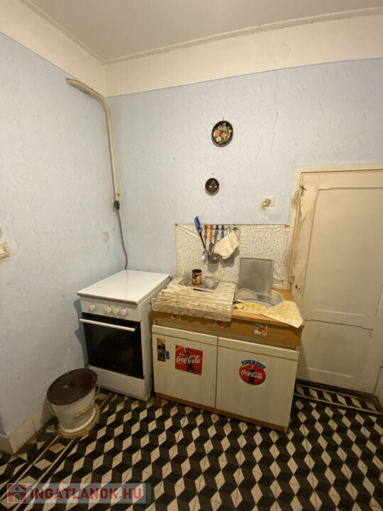 Két szoba, konyhás, külön étkezős, pici fürdős cuki kis ház ezres telken melléképületekkel, ólakkal, pincével, garázzsal.