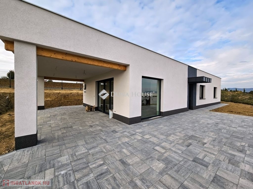 Pécs D-i részén a Postamester utcában eladó új építésű KÉSZ minimal stílusú családi ház.Az ingatlan lakótere 116nm-es, mely magába foglal egy tágas konyha-étkező-nappalit, 3hálószobát melyből az egyik saját fürdőszobával rendelkezik, továbbá egy külön fürdőt, mosdót és gépészeti helyiséget.A nappaliból nyílik a közel 30nm-es fedett terasz.Energetikája A+ - os. Fűtését turbógázkazán látja el, a tetőn napelem.A hűtésről és másodlagos fűtésről klímák gondoskodnak (4db.)A ház tájolása D-K-i, napos.Az ingatlan október végével-november elejével költözhető!