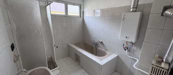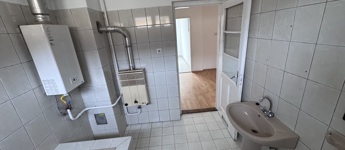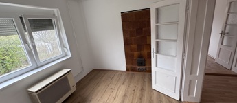 egyedi gázkonvektor + hangulatos cserépkályha, meleg víz gázbojlerből.