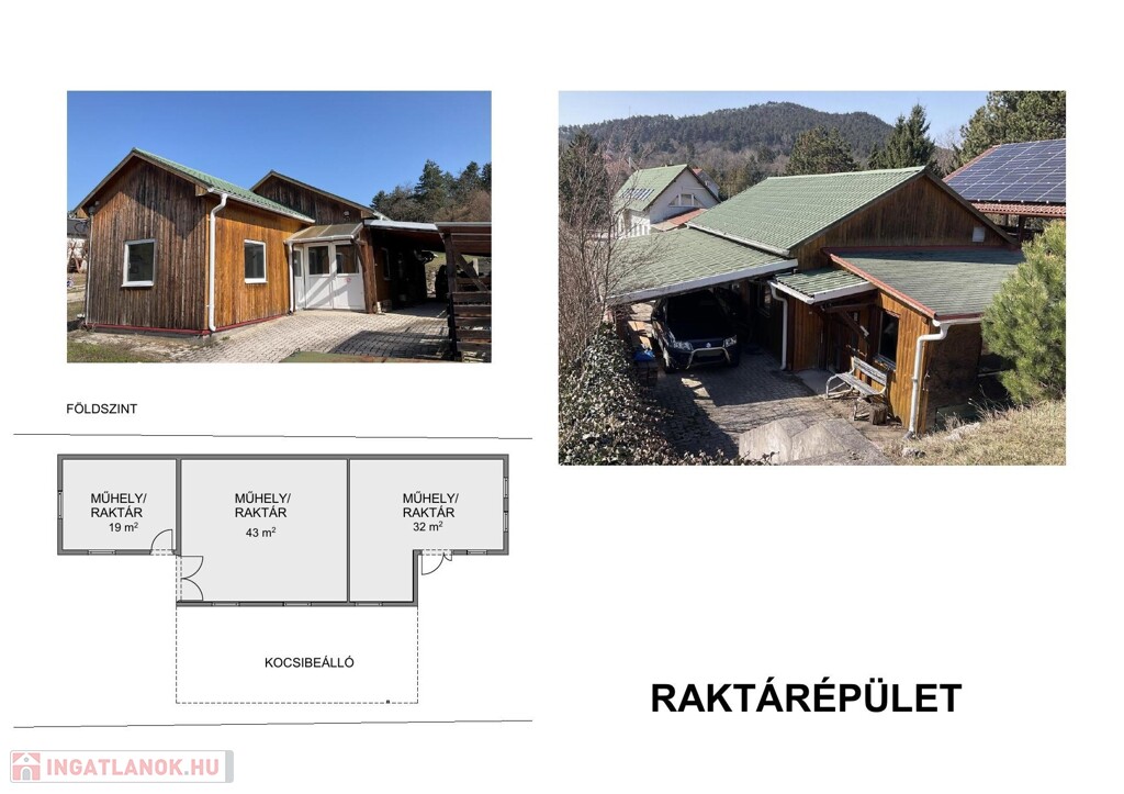 Eladó Pilisvörösváron egy családi ház jellegű ingatlan, amely jelenleg üzem/üzlet besorolású, de teljes értékű lakóházként is használható lehet. Az 1469 m²-es telken 308 m²-es üzlet/üzemépület (garázsszint + földszint + tetőtér) és 78 m²-es raktár található, további bővítményekkel. Az ingatlan gyönyörű panorámás kerttel, kertvárosias környezettel és kiváló tömegközlekedéssel rendelkezik. Ideális többgenerációs családi otthonnak, otthon + vállalkozás kombinációnak vagy tágas lakóingatlannak. A raktárépület is átalakítható különálló lakóépületnek.