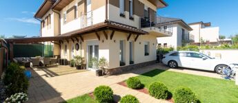 Eladó Siófok Sóstó városrészén egy 2020-ban épült ikerház utcafronti része. Az épület kiváló állapotban van. Precízen átgondolt, rendkívül praktikusan megtervezett bruttó 115 m²-es házról van szó, melyhez 30 m² térkövezett terasz (melyből 20 m² fedett), egy nagy 7m²-es erkély, valamint udvaron belüli térkövezett gépjárműbeálló tartozik. Az ingatlan külön helyrajzi számon van saját telekhányaddal, mely 174 m². Összesen 86 m² nettó lakótérről beszélhetünk. A földszinten található az amerikai konyhás nappali, egy szoba, egy fürdőszoba és egy külön WC. Az emelet 2 szobával, egy nagy fürdőszobával, gépészeti helyiséggel, közlekedővel, valamint egy tágas 7 m²-es erkéllyel rendelkezik.