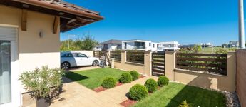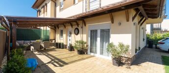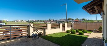 A kertkapcsolatos ingatlanhoz egy gyönyörű, ízlésesen parkosított kertrész, valamint 20 m² fedett térkövezett terasz is tartozik ahol akár grillezhet is a család és a barátok társaságában.