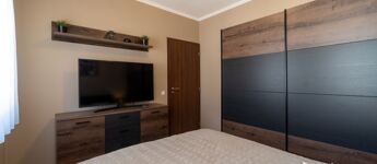 A szobák korszerűen berendezettek és felszereltek, a fürdőszobák modernek és kényelmesek. Nyaralónak vagy állandó lakhatásra is tökéletesen alkalmas.