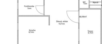 Az ingatlanba egy nagy méretű teraszról jutunk be a világos étkező és előtér együttesébe, ahonnan szemben a konyha és mellette a fürdőszoba, balra a konyhától a tágas nappali, - mely egybenyitható az étkezővel és a konyhával, - jobbra az előtérből pedig a két hálószoba nyílik. A ház elosztásából adódóan funkcionálisan jól elválasztható területekre osztható a ház. A tetőtér beépíthető, a betongerendás kefnis födém ezt lehetővé teszi. A padlásfeljáró jelenleg a kamrából nyílik, mely a konyhából megközelíthető, azonban a kamra másik oldalán a nappali található, melynek falát egybe lehet nyitni a tetőtérbe vezető feljárási lehetőséggel. Így az épület még tágasabb otthonná alakítható. Legyen Ön az, aki megálmodja és kialakítja otthonát ebben a sok lehetőséget rejtő ingatlanban.