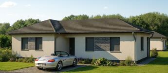 • Épület típusa: egyszintes, 3 hálószoba + amerikai konyhás nappali, terasszal