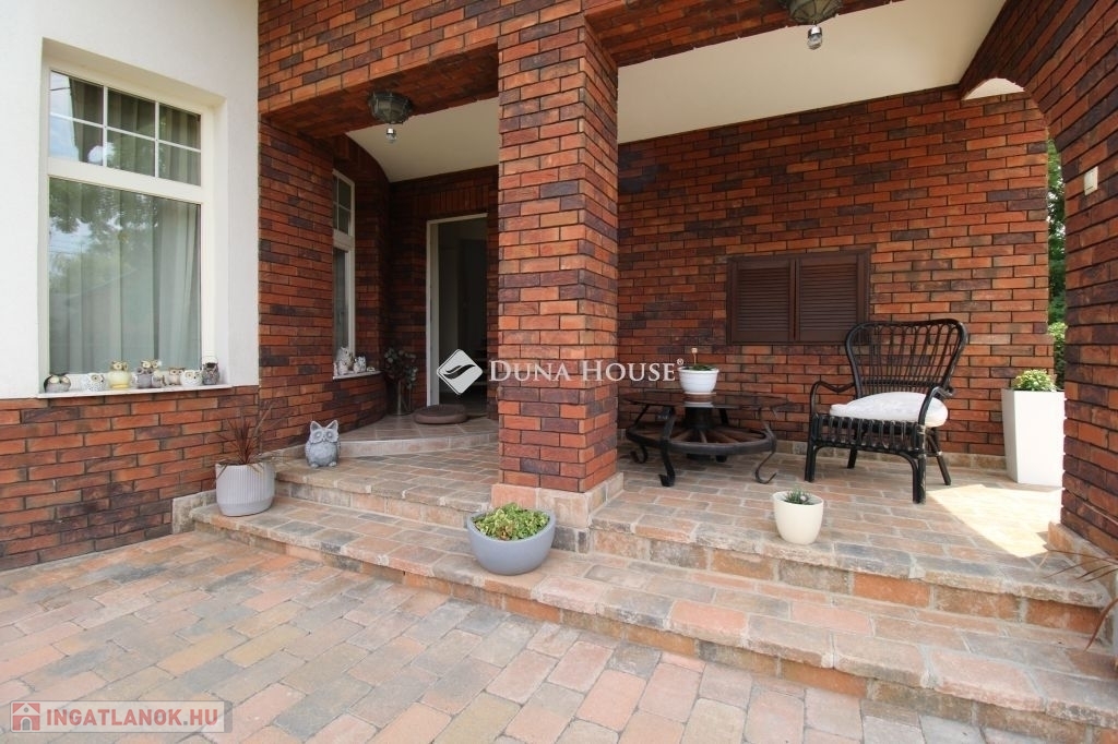 Igényes, prémium kivitelezésű családi ház eladó Szatymazon, Szegedtől mindössze 20 percreCsendes, mégis kiválóan megközelíthető környezetben kínálok eladásra egy különleges, 150 m²-es, minőségi anyagokból épült családi házat, 944 m²-es, gondozott telken. Az ingatlant az elegancia, a funkcionalitás és az okos megoldások jellemzik. A házban két fürdőszoba található travertin kőburkolattal, a kerítéspárkányok márványból készültek, a belső térben pedig egyedi tervezésű bútorok emelik a színvonalat. A földszinten tágas, napfényes nappali, modern konyha, étkező, egy dolgozószoba és egy fürdőszoba található WC-vel, valamint egy nagyméretű, elektromos garázskapuval ellátott garázs. Az emeleten két gyerekszoba, egy tágas hálószoba és egy másik fürdőszoba kapott helyet, amely hidromasszázsos káddal van felszerelve.A házhoz egy sós vizű, lefedhető medence is tartozik, amely inverteres fűtéssel rendelkezik. A medence vízminőségét és működését egy különálló gépház biztosítja, amely a tisztító- és keringetőrendszert kezeli. A kert rendezett, automata öntözőrendszerrel, konyhakerttel és automata fűnyíróval felszerelt.Az ingatlan műszaki felszereltsége kiemelkedő: a fűtés új gázkazánnal működik, a padlófűtés teljes egészében távvezérelhető, emellett hűtő-fűtő klímák biztosítják az ideális hőmérsékletet. A külső világítás, az elektromos kapu és más rendszerek szintén távolról vezérelhetők. Az első és hátsó teraszok ideálisak pihenésre vagy baráti összejövetelekre.Az ingatlan ideális választás lehet azok számára, akik nyugodt, zöldövezeti környezetben keresnek igényes otthont, ugyanakkor fontos számukra a város közelsége is. Azonnal költözhető állapotban van, és kompromisszumok nélküli életminőséget kínál.További információért, vagy megtekintésért keressen bizalommal!
