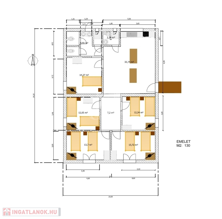 Emelet: 130 m2 nagyságú