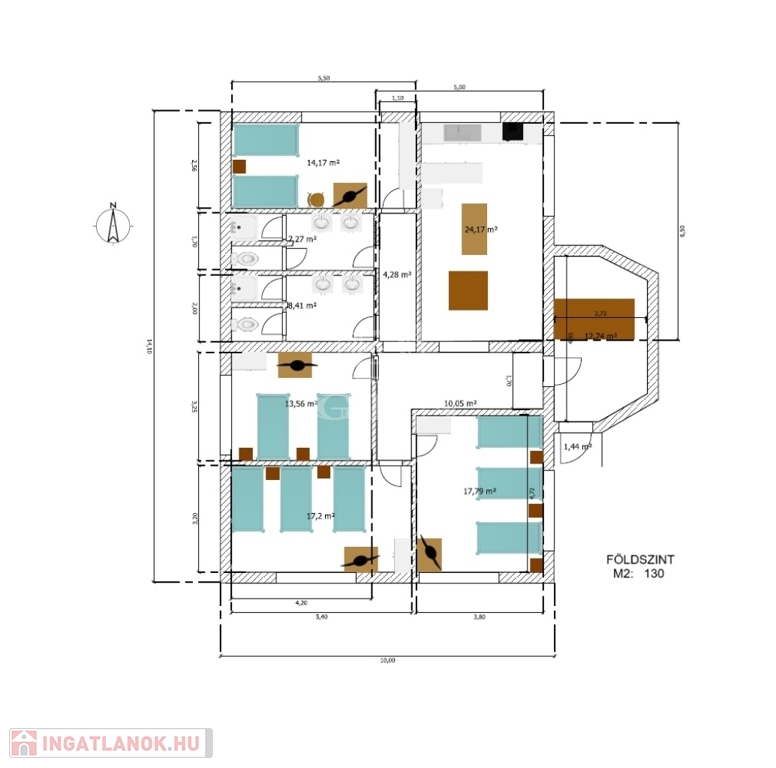Földszint: 130 m2 nagyságú
